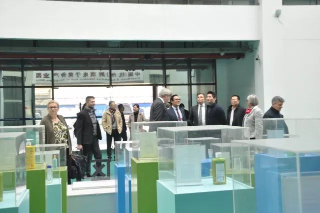 王泉先生作为向导首先陪同代表团来到位于跨贸小镇核心区海彼购街区的法国主题馆,琳琅满目的商品陈列在馆中,让代表团感受到一种法国本土化的消费体验。海彼购街区上还有20余个主题馆,囊括了来自亚洲、欧洲、北美洲、大洋洲的上万种热门商品,为人们提供乐享全球的O2O购物体验。