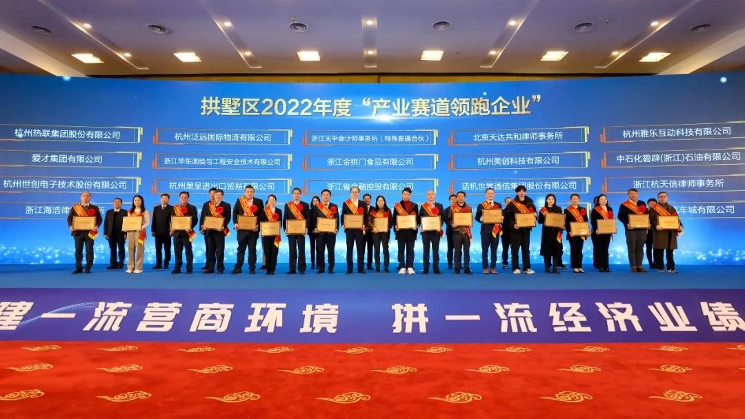 会上,泛远国际被授予杭州市拱墅区2022年度“产业赛道领跑企业”称号,泛远国际董事长王泉先生参加了授牌仪式。